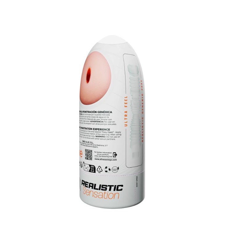 Après une étude approfondie auprès de la population masculine, Alive a développé un tout nouveau type de masturbateur qui répond parfaitement aux attentes des hommes. Avec ce masturbateur, vous pouvez profiter du produit tel quel, sans avoir à le sortir de son boîtier. Sa partie centrale flexible permet aux utilisateurs des plus petites tailles d'ajuster la gaine interne pour une expérience encore plus personnalisée. Son ouverture plus large que celle des masturbateurs traditionnels assure une universalité optimale. L'intérieur est fabriqué avec des matériaux de haute qualité et les dimensions du canal ont été soigneusement étudiées pour offrir une sensation aussi réaliste que possible.