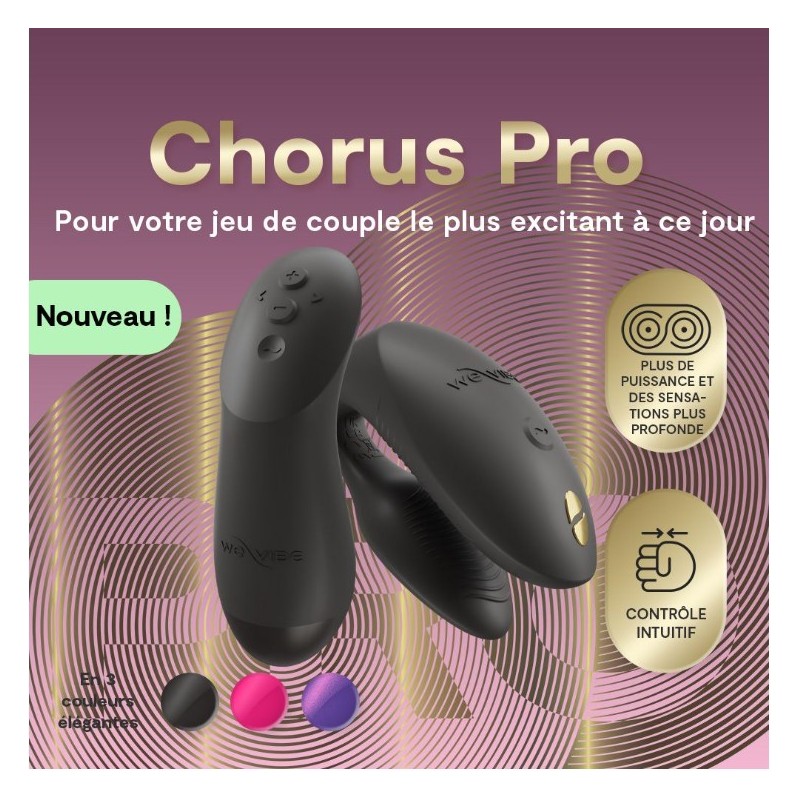 Entrez dans une nouvelle dimension du plaisir à deux avec le Chorus Pro, le stimulateur connecté le plus innovant de We-Vibe. Conçu pour les couples, il s’adapte à chaque corps et transforme chaque mouvement en onde de plaisir.