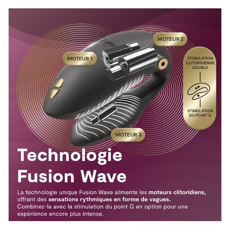 Grâce à la Fusion Wave Technology, le clitoris et le point G sont stimulés simultanément par des vibrations profondes, enveloppantes et parfaitement synchronisées. Résultat : des sensations intenses, naturelles et partagées, où chaque vibration rapproche les corps.