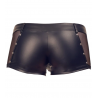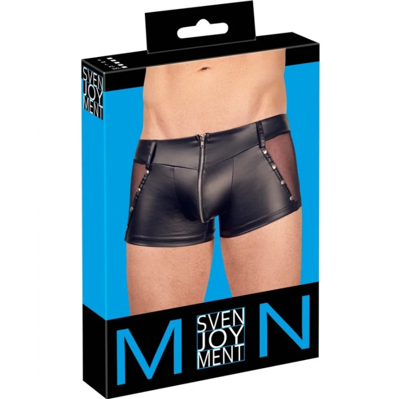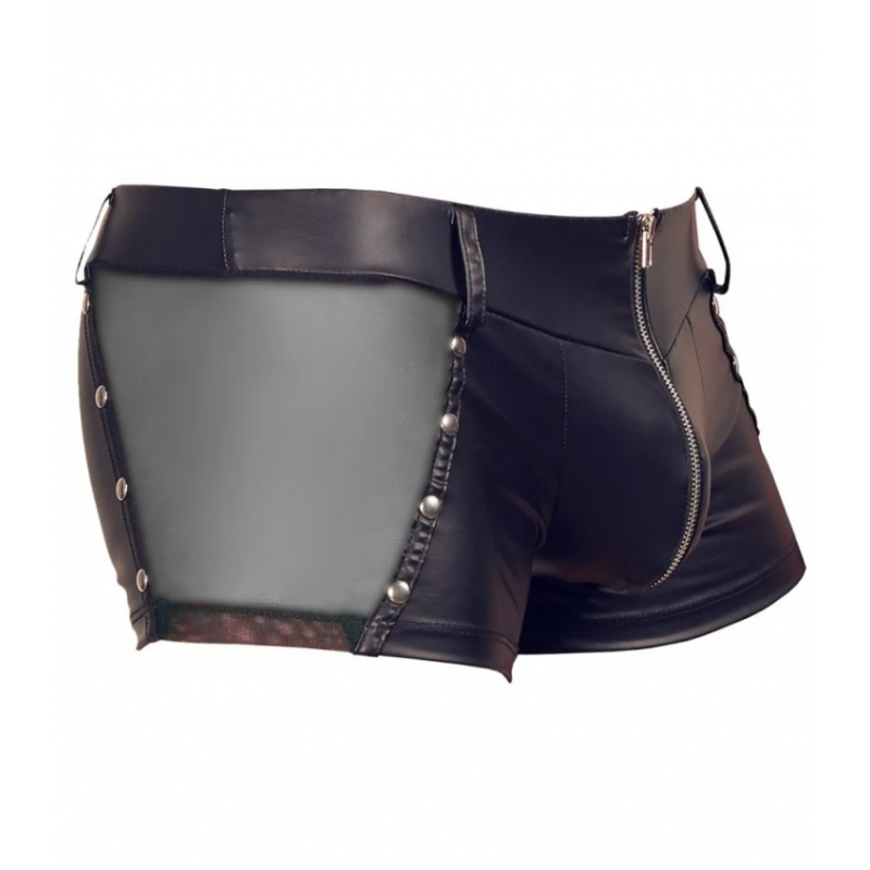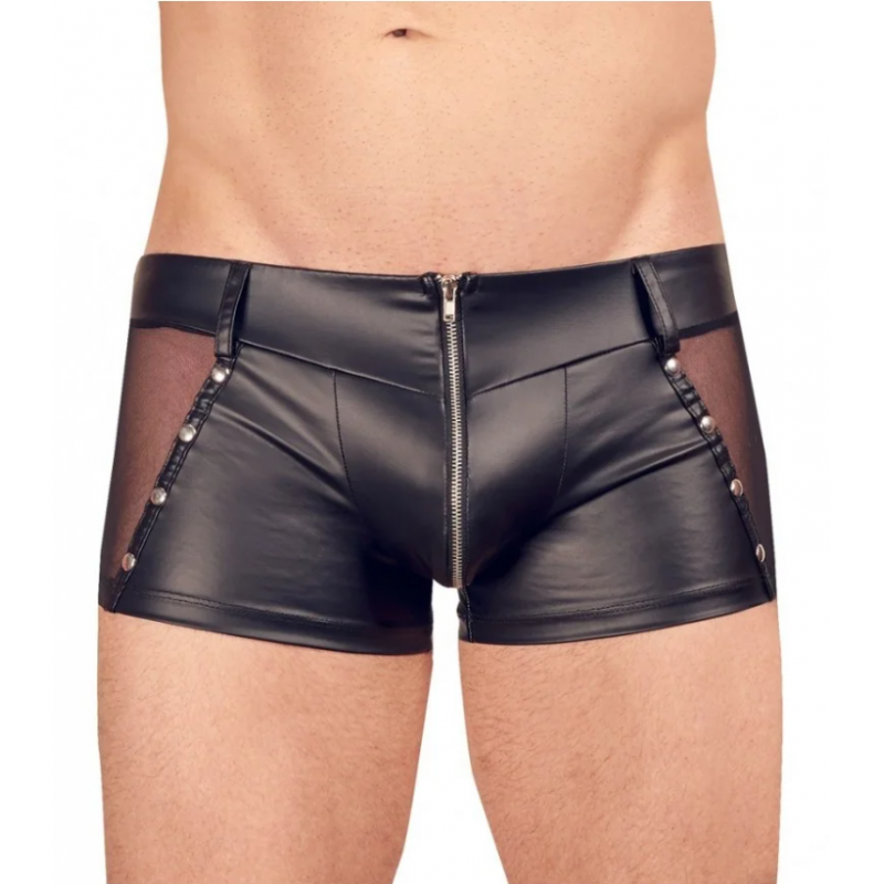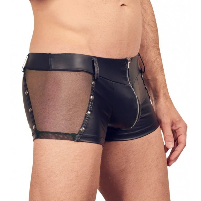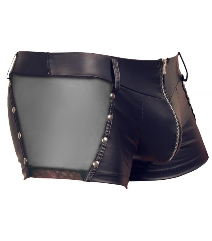 Le boxer en imitation cuir noir est la pièce parfaite pour allier style, confort et audace. Son effet cuir brillant apporte immédiatement une touche moderne et tendance, tandis que ses côtés en tulle fine créent un jeu de transparence subtil et raffiné qui met en valeur la silhouette. Conçu dans un mélange de polyester et d’élasthanne, il offre une douceur agréable et une liberté de mouvement optimale tout au long de la journée. Son zip métallique à l’avant, doté d’une doublure protectrice, ajoute une finition premium qui allie élégance et praticité. Grâce à sa surface en polyuréthane, ce boxer conserve durablement son aspect impeccable. Moderne, séduisant et confortable, il s’impose comme le choix idéal pour ceux qui souhaitent se démarquer avec style.