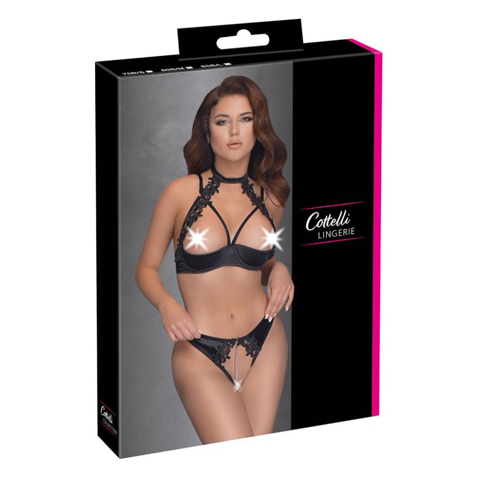 Ensemble Ouvert Noir Détail floral - Cottelli Lingerie