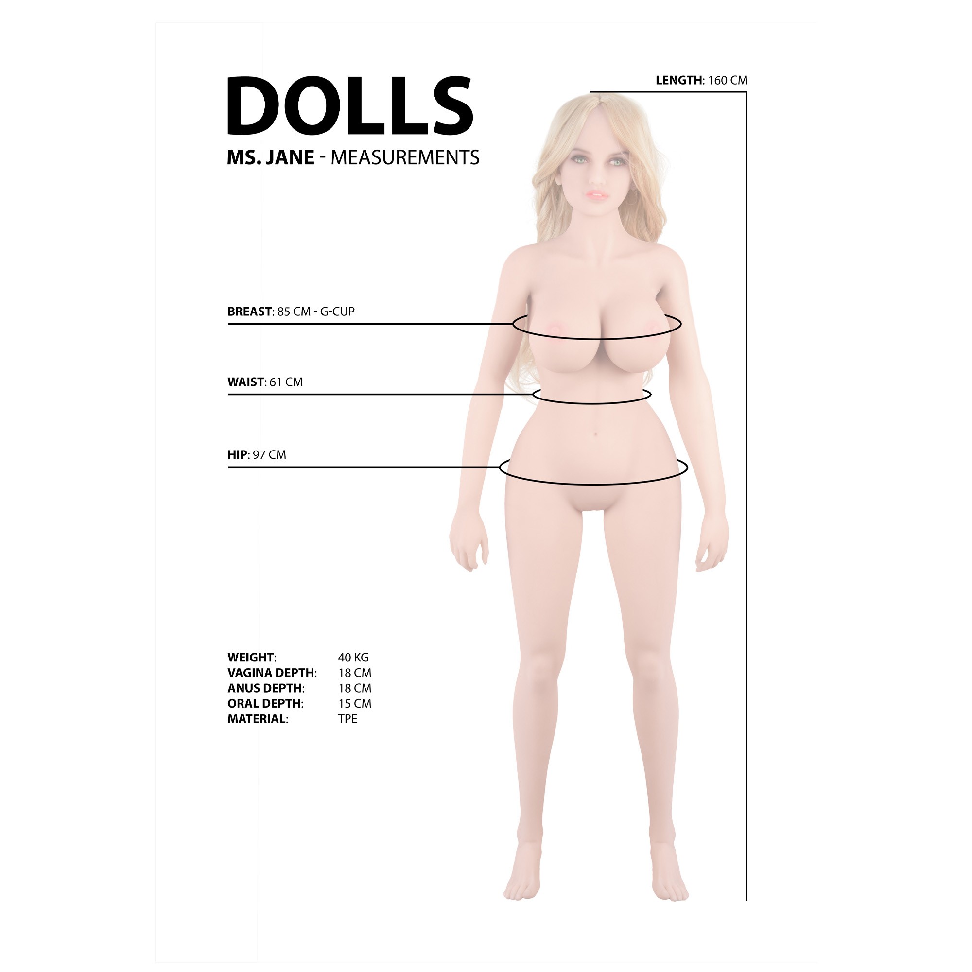 Pour une expérience complète, Jane dispose de trois orifices (oral, vaginal et anal) conçus pour un réalisme maximal.