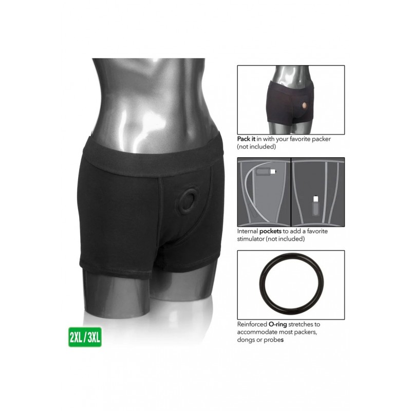 Alliez confort et performance avec le Harnais Packer Gear Boxer Brief. L’apparence d’un boxer classique avec la fonctionnalité d’un véritable harnais. Conçu en coton/spandex ultra-doux, il intègre un joint torique extensible compatible avec la plupart des packers et accessoires. Ses poches internes et sa sangle sécurisée assurent un maintien optimal pour un plaisir mains libres, en toute discrétion. Facile à enfiler, confortable à porter, durable et lavable : le choix idéal pour conjuguer style, stabilité et sensations.