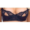 Ensemble élégant et audacieux composé d’un soutien-gorge à armatures, d’un porte-jarretelles et d’un string Rio, avec jarretelles incluses. Réalisé en fine dentelle stretch douce, il séduit par ses détails raffinés d’ouverture et ses découpes sensuelles sur les demi-bonnets. Les bretelles et les 8 jarretelles réglables assurent un ajustement parfait, tandis que le tissu doux et élastique offre un confort optimal. String Rio ouvert sur le devant. Bas non inclus.