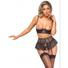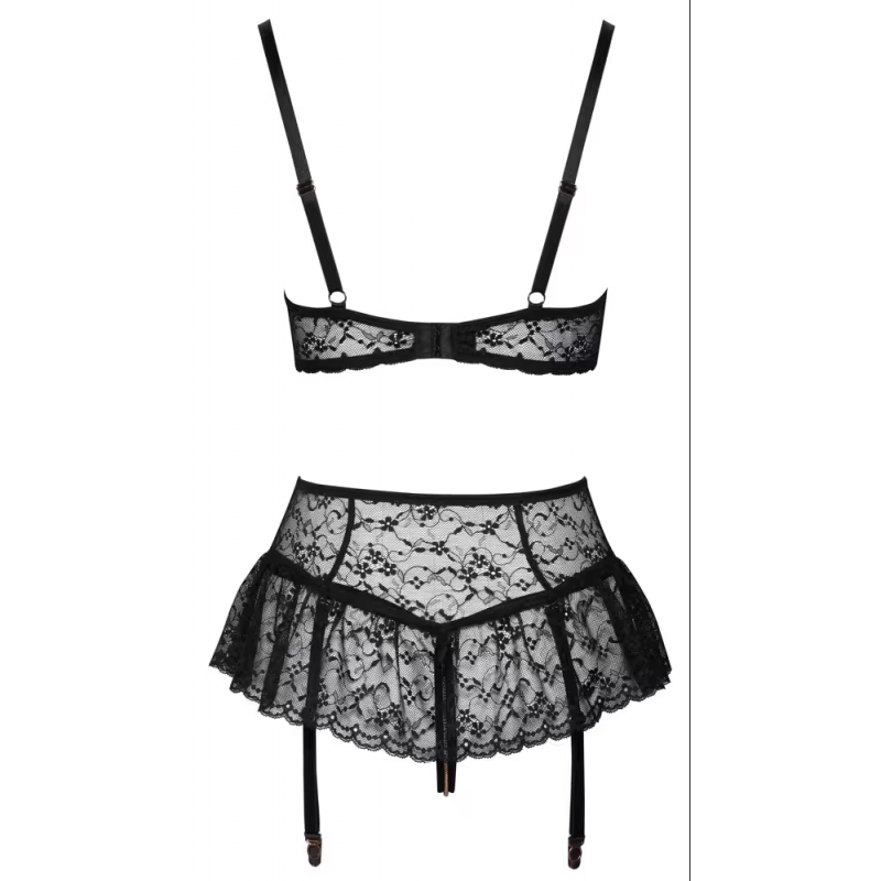 Ensemble lingerie 3 pièces : soutien-gorge, jupe porte-jarretelles, string ouvert