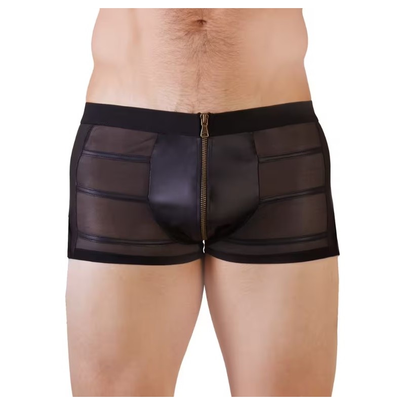La fermeture éclair frontale apporte une touche moderne et provocante, soulignant les formes avec caractère tout en renforçant l’allure dominante de ce boxer. Sa coupe ajustée épouse parfaitement le corps pour offrir un maintien confortable et un look puissant.