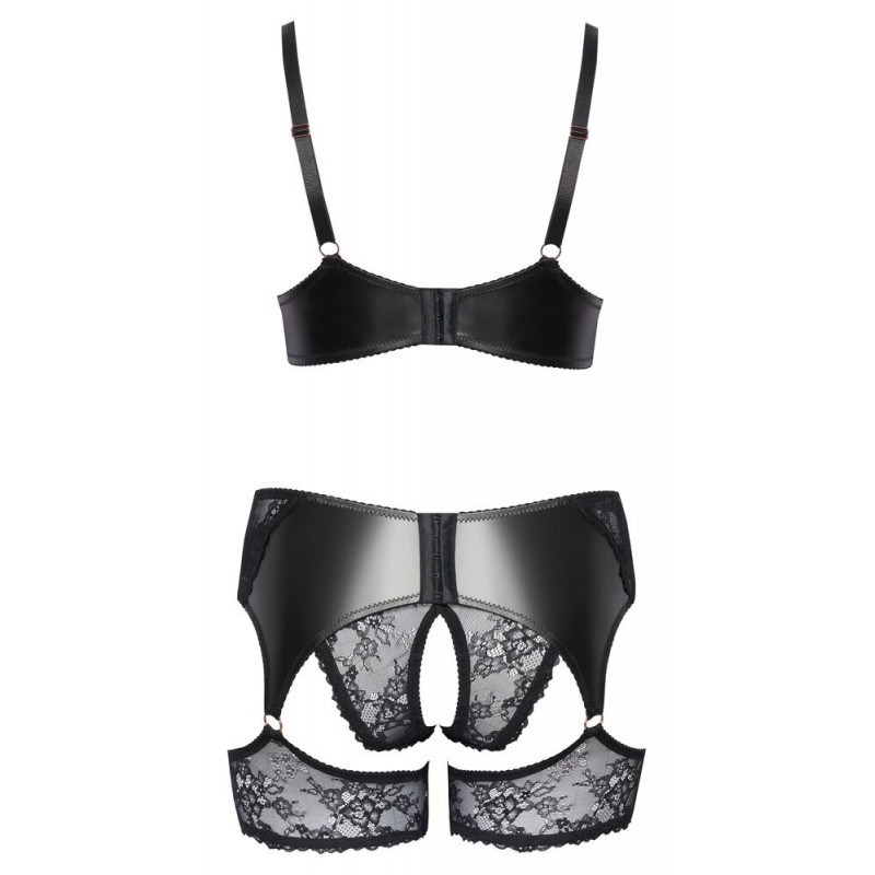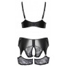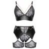 Ensemble 3 pièces : soutien-gorge, slip ouvert et porte-jarretelles