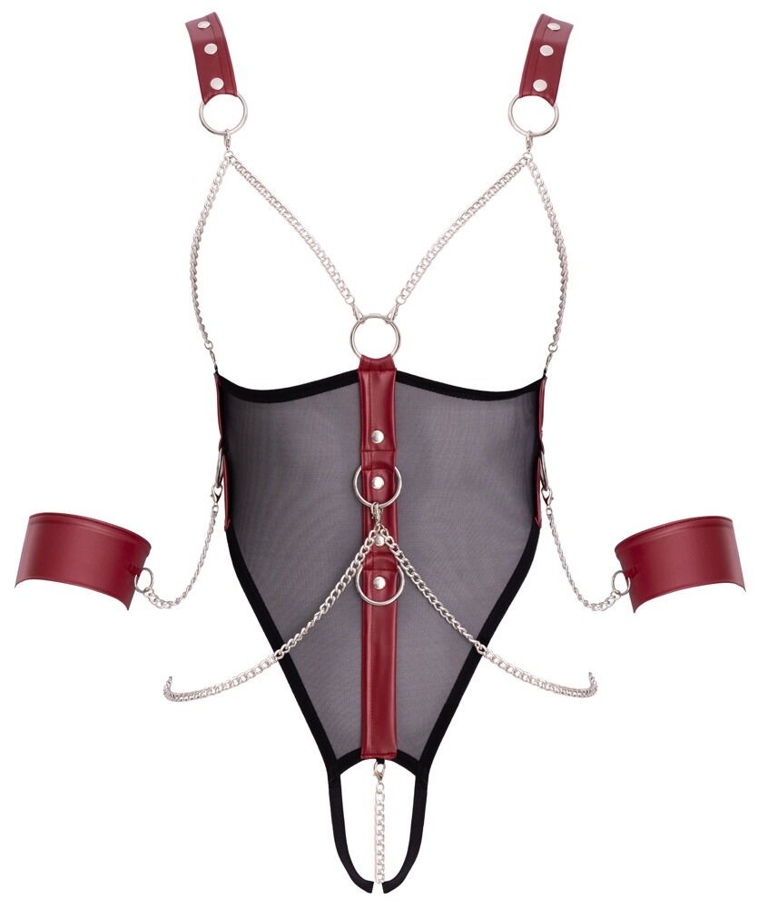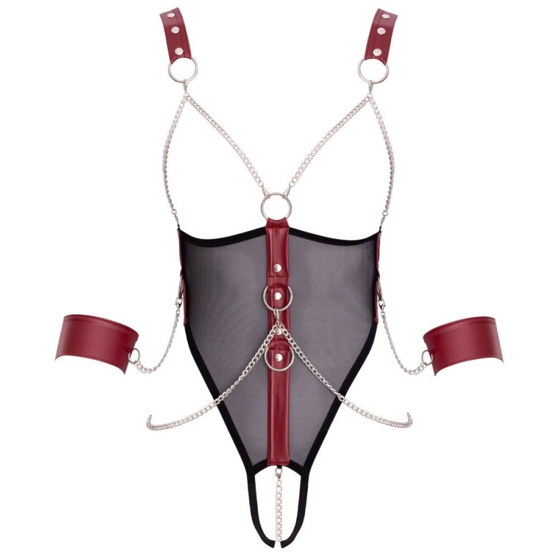Body bondage ouvert avec chaînes amovibles et menottes