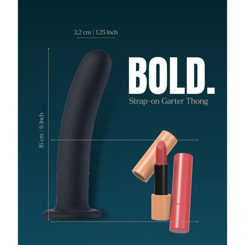 Envie d'aventure ? L'anneau en O fixe transforme cette pièce provocante en un harnais élégant en quelques secondes. Il vous suffit de clipser le godemichet noir de 15 cm inclus et de vous préparer au jeu.