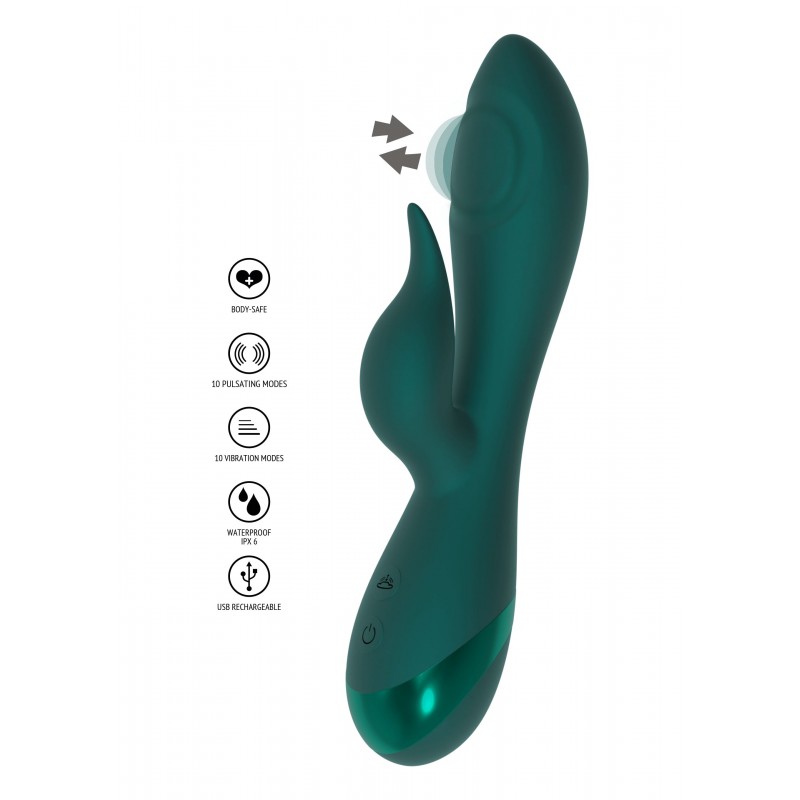 Ce rabbit se distingue par sa double action synchronisée : un stimulateur clitoridien à tapotements pour des sensations percutantes et une courbure étudiée pour une stimulation intense du point G.